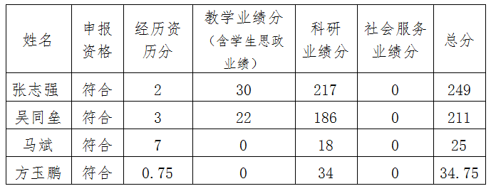 公司2024年职称申报人员为:张志强(申报教授)、吴同垒(申报教授)、马斌(评助理研究员(社科类))、方玉鹏(转评讲师)。经公司基层学科推荐评议组审核张志强、吴同垒、马斌、方玉鹏四位同志符合职称评定文件要求,同意推荐。按照职称工作相关文件,对申报人材料进行认定和量化。现予以公示:
