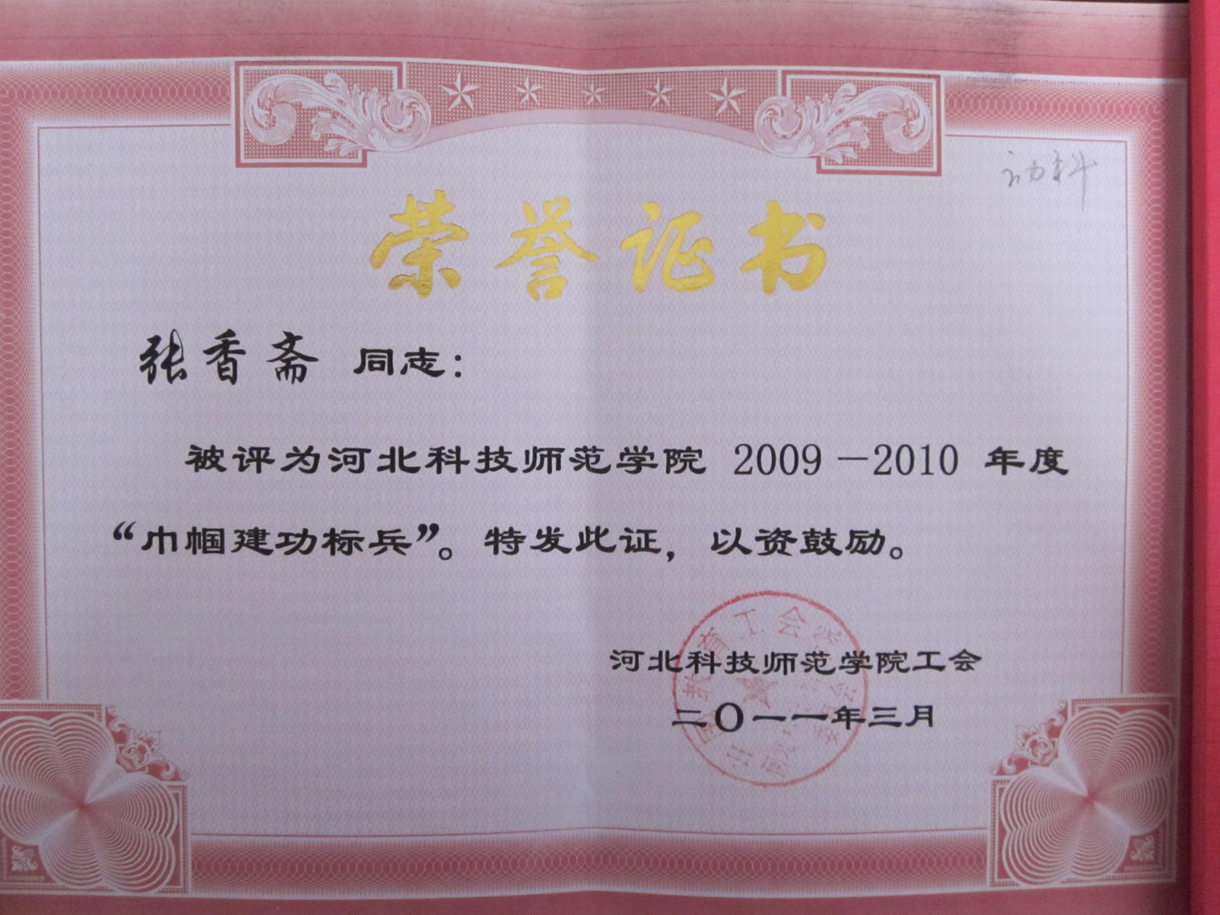 喜讯三:公司张香斋老师被评为vsport官方网站2009-2010年度“巾帼建功标兵”