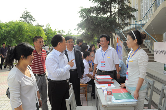 公司副董事长孟令臣同志、党委常委刘泽义同志、昌黎校区办主任李彦生同志及校人才招聘处马晓峰、孙连海同志亲自到现场指导工作,并和用人单位代表一一见面。孟董事长向用人单位表达了欢迎和感谢之意,同时询问了用人单位招聘毕业生情况,征求了对公司员工培养、教育改革的意见和建议,提出了加强和拓宽校企合作的意向。